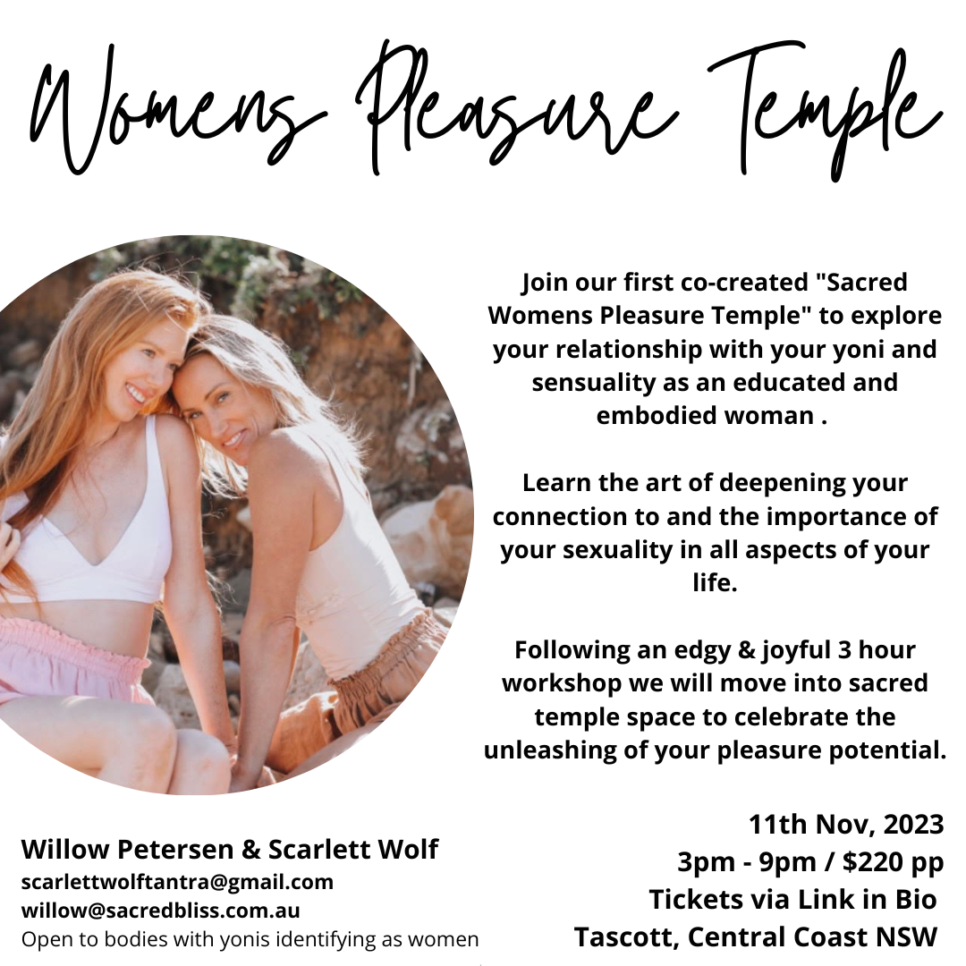 Join embodiment, tantra, intimacy and sexology facilitator Willow Petersen and tantric bodyworker & sacred temple holder Scarlett Wolf for a uniquely edgy and sacred day retreat exploring your YONI-verse and sacred pleasure!